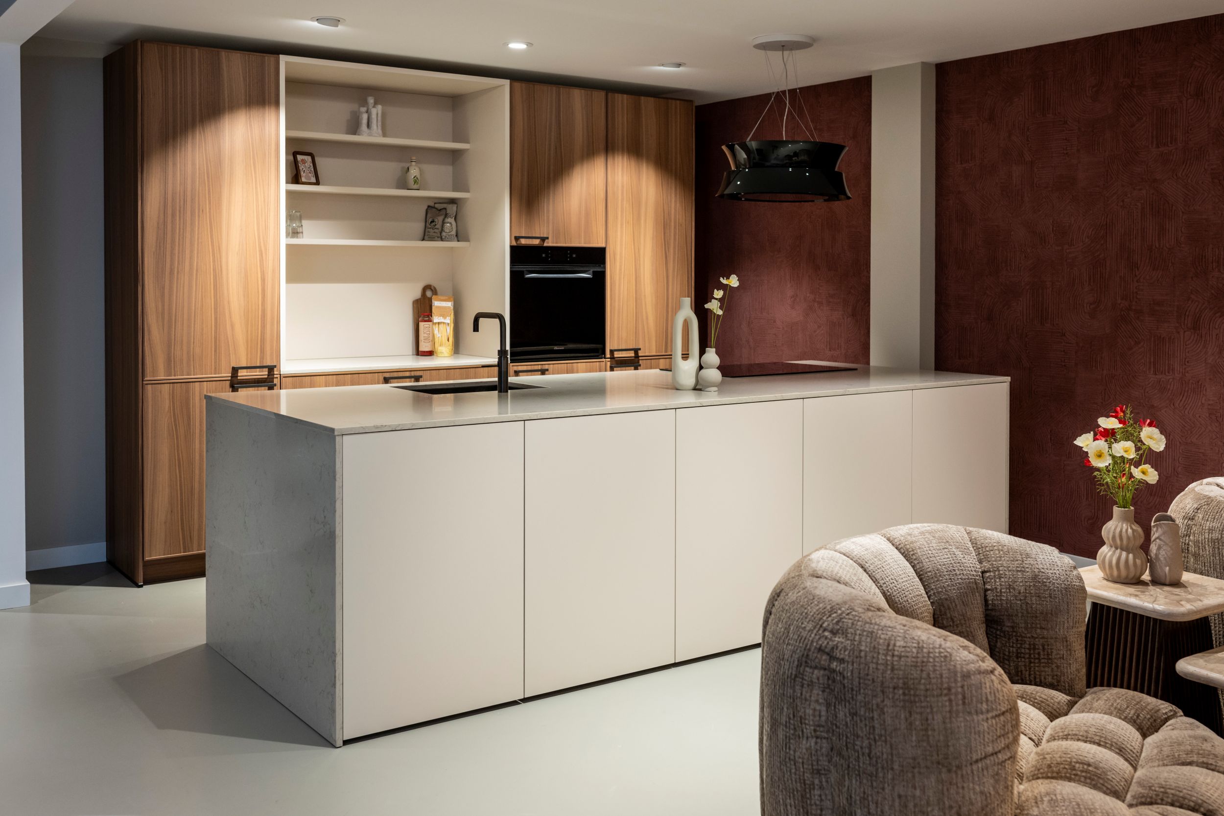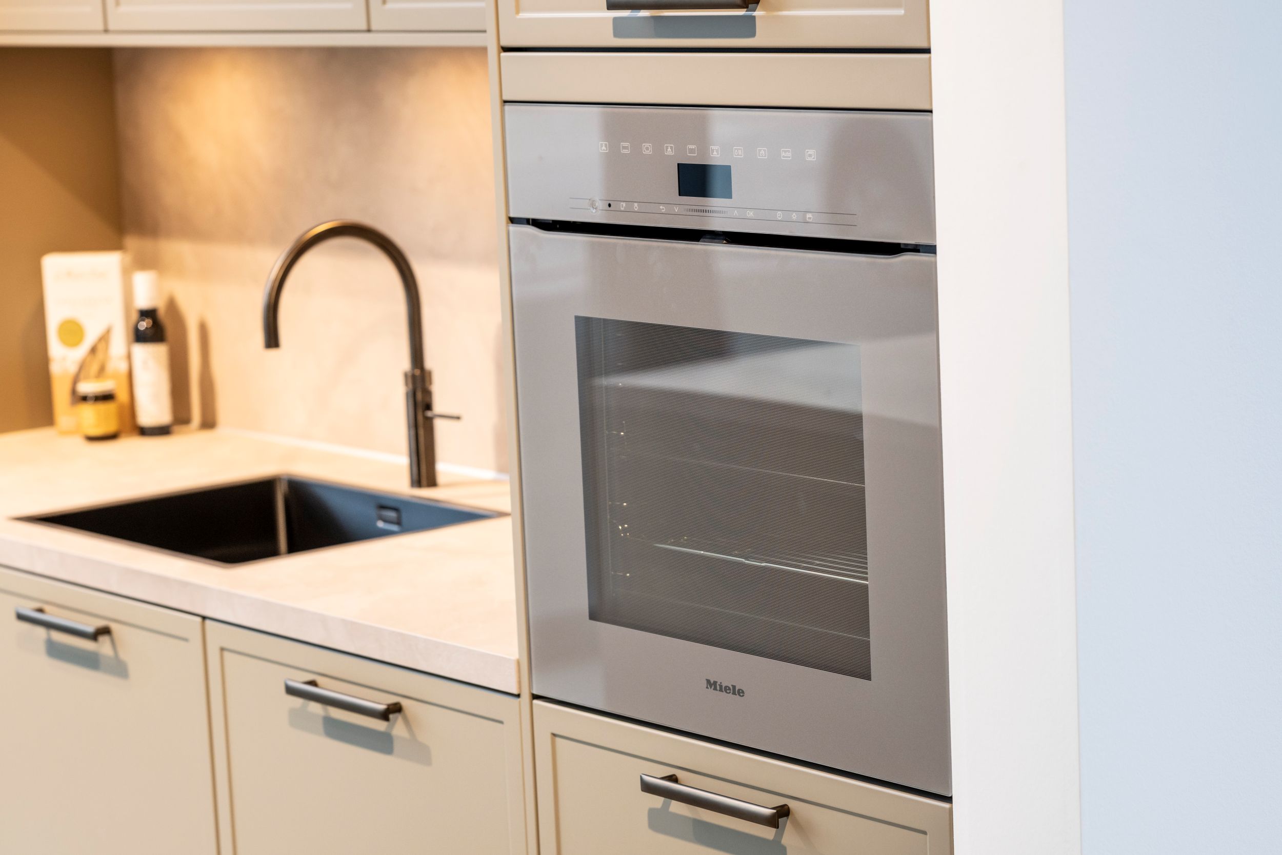 “Liefde en blijdschap.” Daarmee kijkt Tim Schellekens terug op het eerste half jaar van Grando Den Bosch. “Je helpt mensen hun dromen te verwezenlijken”, vervolgt hij. “Dat doe je door een samenwerking voor 20, 25 jaar aan te gaan. “ Bij Tim, Kelly en hun team overheerst dan ook een gevoel van trots. Ze kijken met een warm gevoel om zich heen in de 850 vierkante meter keukens en badkamers, verdeeld over twee verdiepingen. Daarbij valt de ruimte op. “Ja, less is more”, weet Kelly. Zij deelt de prachtige opstellingen via social media en krijgt regelmatig een warm gevoel van enthousiaste reviews op Google. “Zo werden we bij een klant uitgenodigd om in hun nieuwe keuken te komen eten.”